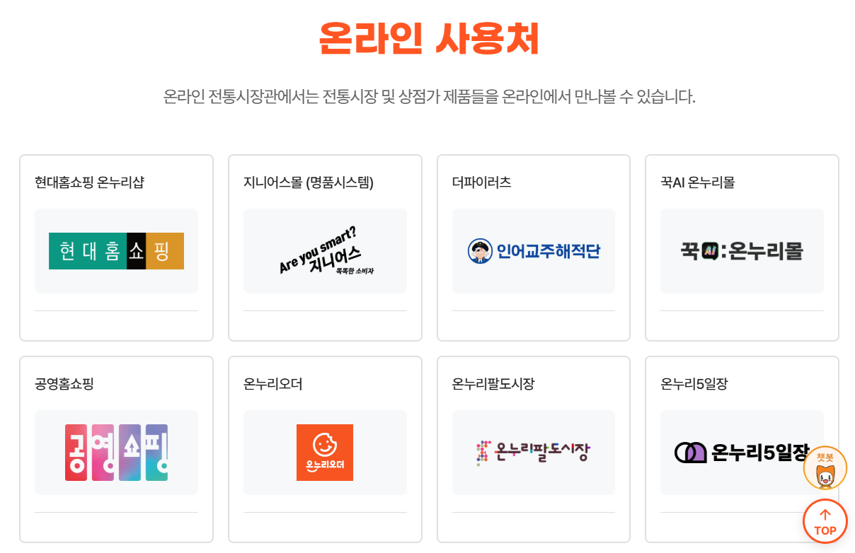 - 스마트폰 사용 가능 → 모바일 온누리상품권