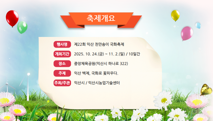 2025 익산천만송이국화축제 일정표는 다음과 같습니다.